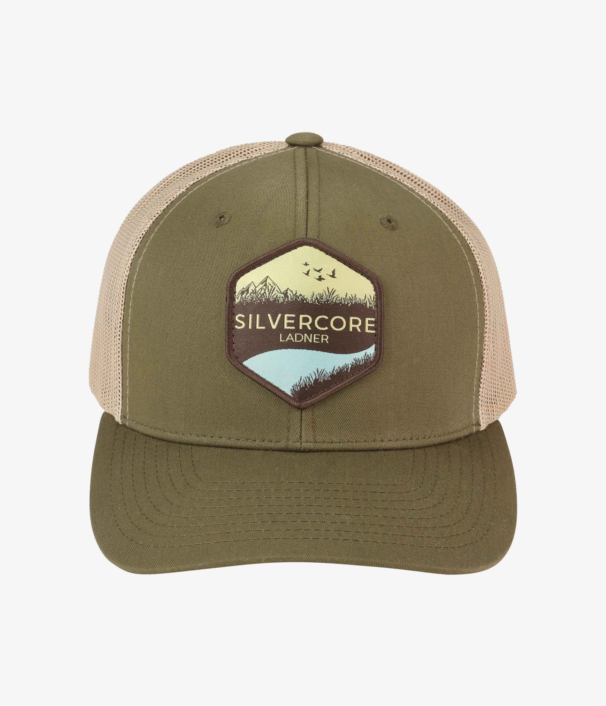 Delivering easy-going comfort with ample breathability, the Silvercore Ladner Trucker hat boasts style and functionality. Green and Tan cotton twill, polyester mesh and snap back enclosure.